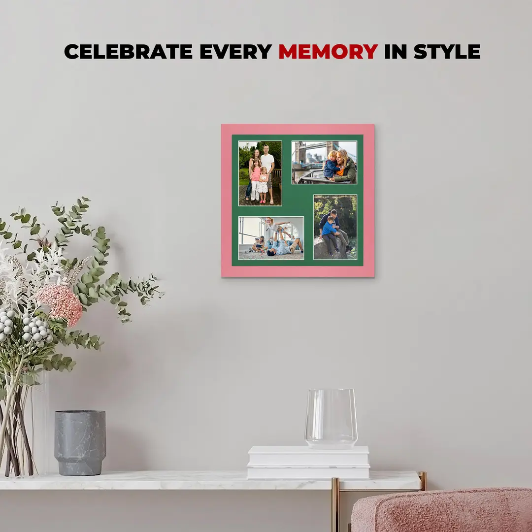 Create a clean, elegant photo display with this 6X4 (x4) collage Pastel Pink frame with Emerald (Green) Mount by Alison Kingsgate. Designed to fit 6X4 (x4) photos, this frame brings together your favourite memories in one beautifully arranged wall piece.