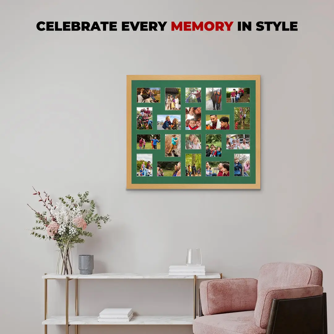 Organise your memories in one neat and stylish display with this 6X4 (x18) & 4X4 (x2) collage Country Pine frame with Emerald (Green) Mount by Alison Kingsgate. Designed to fit 6X4 (x18) & 4X4 (x2) photos, this frame is perfect for family pictures, travel highlights, or milestone moments.