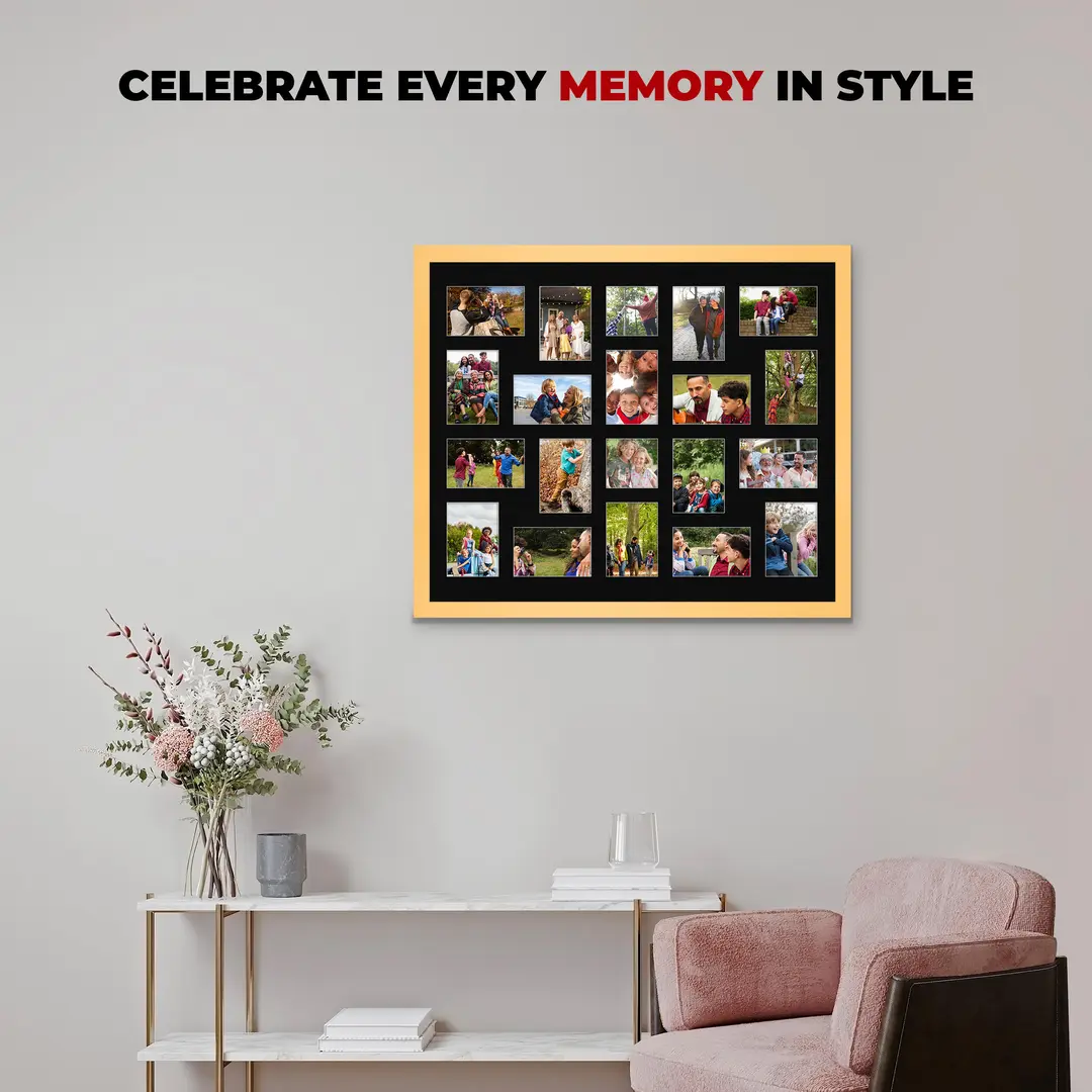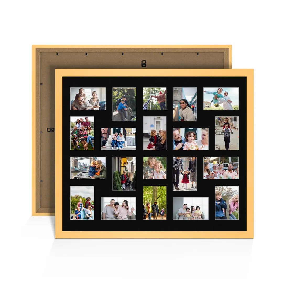 Shop our 18-opening 6X4 & 2-opening 4X4 Mustard Yellow multi aperture photo frame. Modern collage design for family photos